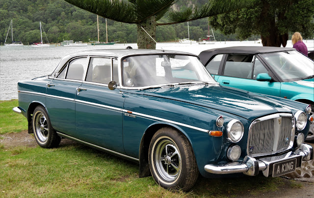 Checked into our accommodation, registered for the event and a nice drive round town at dusk with a few of the 160-odd entrants.  A number of entrants had cancelled because of the weather forecast. Next morning, we all met at a local park and mustered in lines by make of vehicle so we we would park in the same order at the public display venue on the waterfront.  It was warm and overcast with a stiff breeze.  MG's were bracketed by Land Rover on one side and Austin Healey and Rolls Royce Rolls Royce on the other.  No snobbery at all, everyone was totally approachable and chilled.
